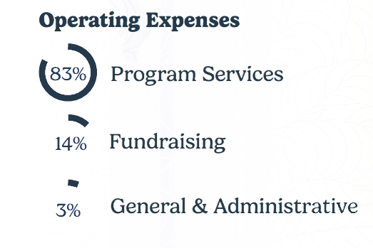 The Better Business Bureau Wise Giving Alliance recommends giving to organizations who spend at least 65% of their total expenses on program activities. Last year, 83% of our expenses were in program services.
