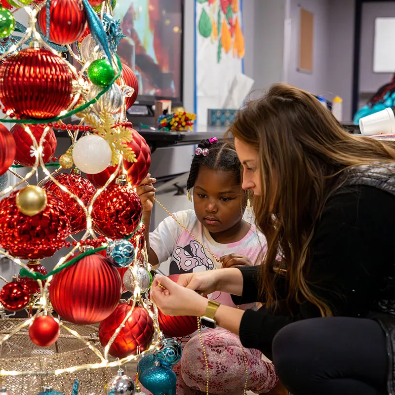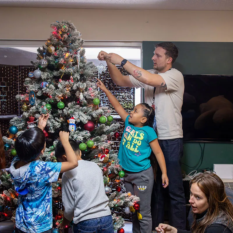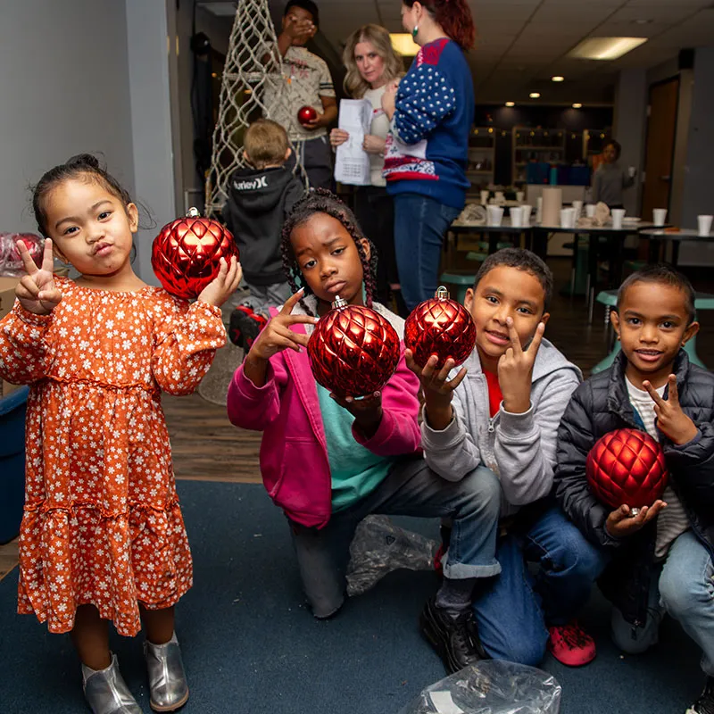 The holiday festivities began with children and families taking photos with Santa at The Crossing! Then the kids went into the Youth Center to eat cookies and hot chocolate and help decorate two of the Youth Center’s rooms alongside our Young Professionals group. Together, they put up Christmas trees and made snowflakes, all while listening to holiday music.