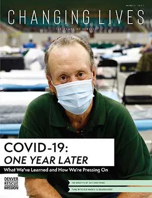 It’s been one year since a state of emergency was declared in Denver following the outbreak of COVID-19 and the world turned upside down. But, thanks to your kindness and support, Denver Rescue Mission and people like Joseph who come to us for help are pressing on and finding silver linings in the midst of adversity.