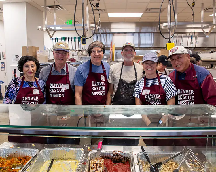 During their time volunteering, the team and staff handed out food and winter weather apparel to each of the men who use the Mission’s services at its north Denver location.