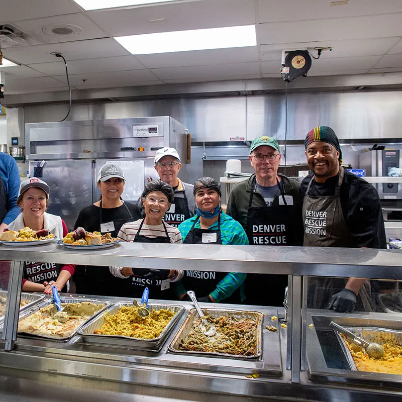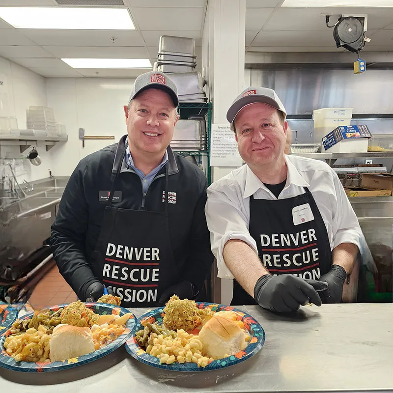 We were happy to host Governor Polis (middle) and Senator Hickenlooper (right) during our annual Thanksgiving Banquet at the Lawrence Street Community Center. We appreciated their continued commitment to helping the most vulnerable Coloradoans. They served alongside our President/CEO Dennis Van Kampen (left), who experienced his first Thanksgiving banquet at the Mission.